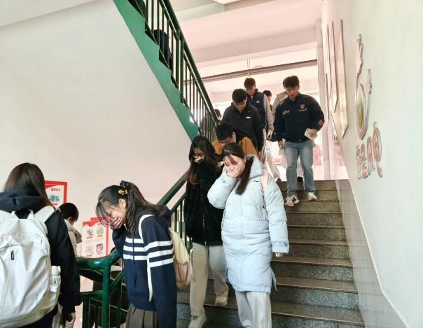 医学院开展“以练为战·消防演练”活动。警报发出后,同学们迅速弯腰、捂住口鼻,沿楼道右侧有序快速撤离。安全抵达集合点后,医学院辅导员武坤复盘讲解了演练流程、注意事项及逃生要领,确保消防安全知识入脑入心。“趣味问答·知识蹲蹲乐”活动以游戏抽签形式开展,内容涵盖火灾预防、灭火器材使用、应急避险等方面。同学们踊跃参与、积极作答,展现出良好的学习风貌,进一步深化了同学们对消防安全的理解与掌握。“实操实训·消防技能培训”主题活动中,志愿者围绕灭火器使用规范、操作要点及火场应急处置知识进行系统讲解。随后,参训同学依次开展实操演练,在专业指导下规范完成模拟灭火操作,切实掌握消防应急技能。