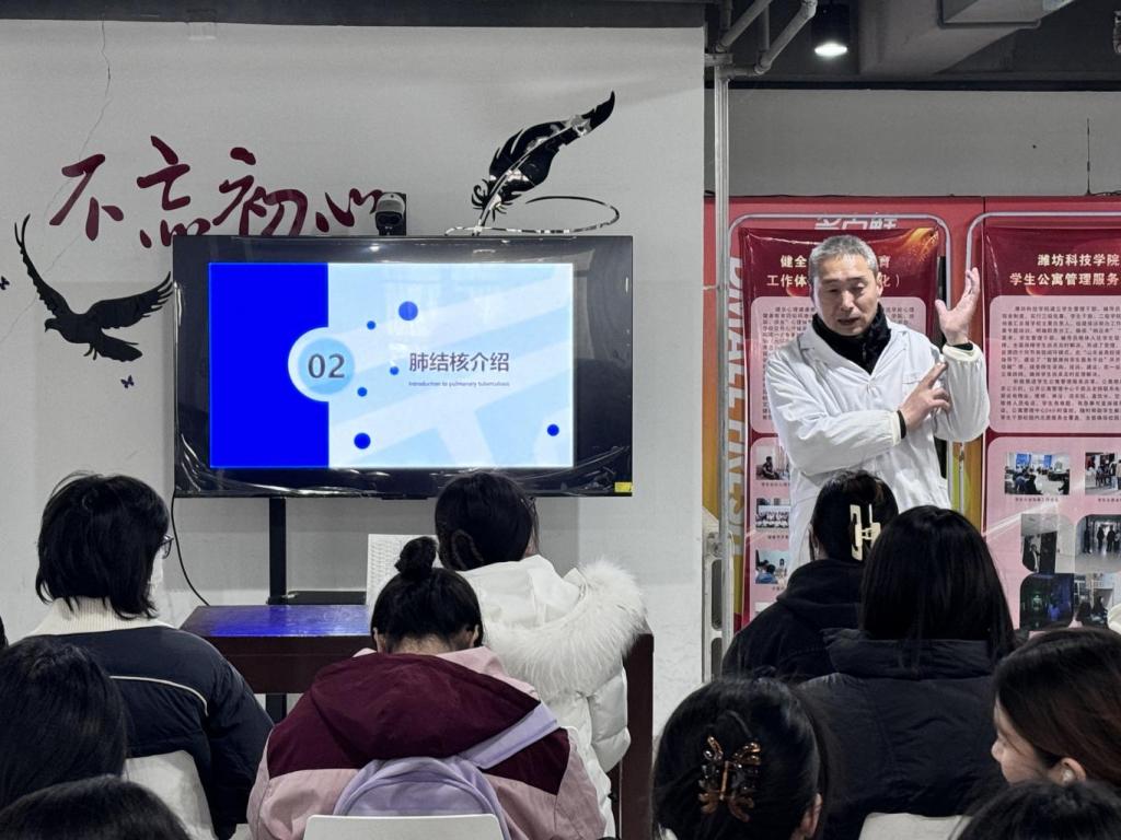 活动特邀校医院副主任马英武在一站式社区开展肺结核防治专题科普宣讲。马英武结合校园生活实际,系统讲解传播途径、临床症状、检测方法及防控重点,剖析常见误区,现场解答学生疑问,帮助大家牢固树立“早发现、早诊断、早治疗”的健康防护理念。
